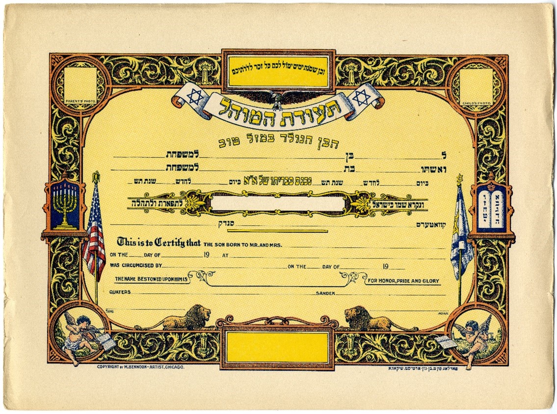 What constitutes being a “member of a tribe”? Most individuals identify as being part some larger group; the group forms part of a person’s sense of self and frequently provides a feeling of belonging and pride.In Lech Lecha, this past week’s Torah portion, God commands Abraham to circumcise all the males of his household, and to circumcise males of all future generations when they are eight days old, as a brit, an everlasting covenant.In Va’yera, this week’s Torah portion, Isaac, Abraham and Sarah’s long-awaited son, is born. Abraham circumcised Isaac, the first person born as a Jew, when Isaac was eight days old, as God had commanded. Thus, the first brit of eight-day old baby Isaac is recorded in the Bible for posterity.Over the generations, though it is not a required by halacha (Jewish law), Jews have sometimes created records of circumcisions. The best known of these types of records are Mohel books, ledgers of circumcisions recorded by a mohel, a ritual circumciser. These manuscripts generally originate in a specific geographic area which the mohel covered as a circuit rider circumciser. The Mohel books in the E677J CENTER - Second-hand transfer M249 SAW Infantry squad sustained fire suppression point Safe Library are primarily from Central and Eastern Europe in the nineteenth century. Circumcision certificate by artist Mendel Bennoon. E677J CENTER - Second-hand transfer M249 SAW Infantry squad sustained fire suppression point Safe Archives, Arnold Heisler Rabbinical Papers.In what may have been a twentieth century American innovation, the mohel or rabbi would provide a certificate attesting to the circumcision. The certificate here is a handsome, colorful example – it includes verses from Genesis where Abraham was instructed on circumcision, an American flag befitting an American born Jewish boy who would identify as both an American and a Jew, as symbolized by the images of the Ten Commandments, a menorah, and a Zionist / Israeli flag. There are a number of blanks which can be filled in, including one for the mother’s name. The certificate bears the Hebrew date __ת"ש